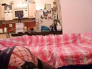 Shiny Latex Babe Spreads Ass on Checkered Bed